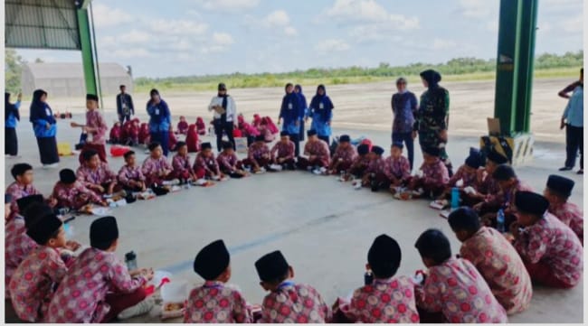 Pelaksana Tugas (Plt.) Bupati Way Kanan Ayu Asalasiyah, S.Ked bersama Siswa Siswi SD IT Bina Insani melakukan Kunjungan Berlajar ke Skadron/12 Amur Jaya Yudha Kecamatan Way Tuba, Kamis (08/05/2025).