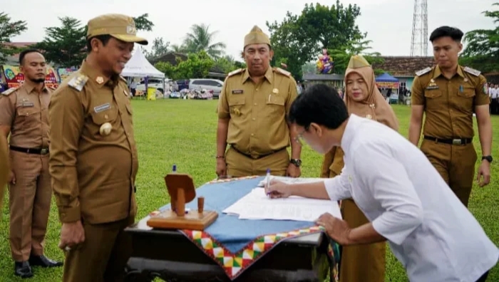 Pringsewu – sebanyak 1.233 Aparatur Sipil Negara (ASN) Pegawai Pemerintah dengan Perjanjian Kerja (PPPK) di lingkungan Pemerintah Kabupaten Pringsewu, diambil sumpah oleh Bupati Pringsewu Riyanto Pamungkas di Lapangan Kecamatan Adiluwih, Senin (30/6/2025) pagi.