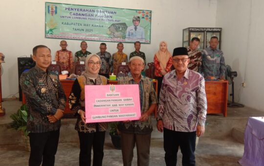 Bupati Way Kanan, Ayu Asalasiyah, secara simbolis menyerahkan bantuan cadangan pangan berupa gabah kepada Lumbung Padi Masyarakat (LPM) yang dikelola...